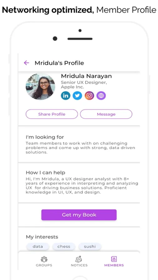 Members Directory and Member Profiles which are networking optimized with social contacts