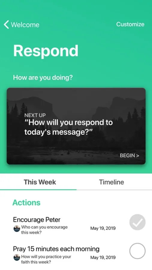This app is for everyone who ever wanted to feel more connected in a faith community, to be nudged toward an abundant life, to better carry Sunday into Monday, only to find it just beyond their reach. May this app extend your reach.