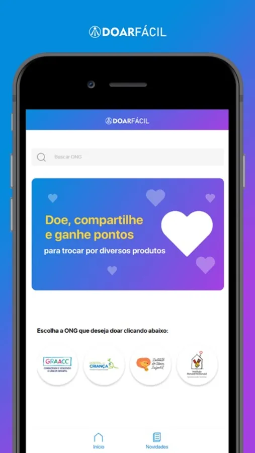 O Doar Fácil é um aplicativo de doações que conecta você com as maiores ONGs do Brasil.