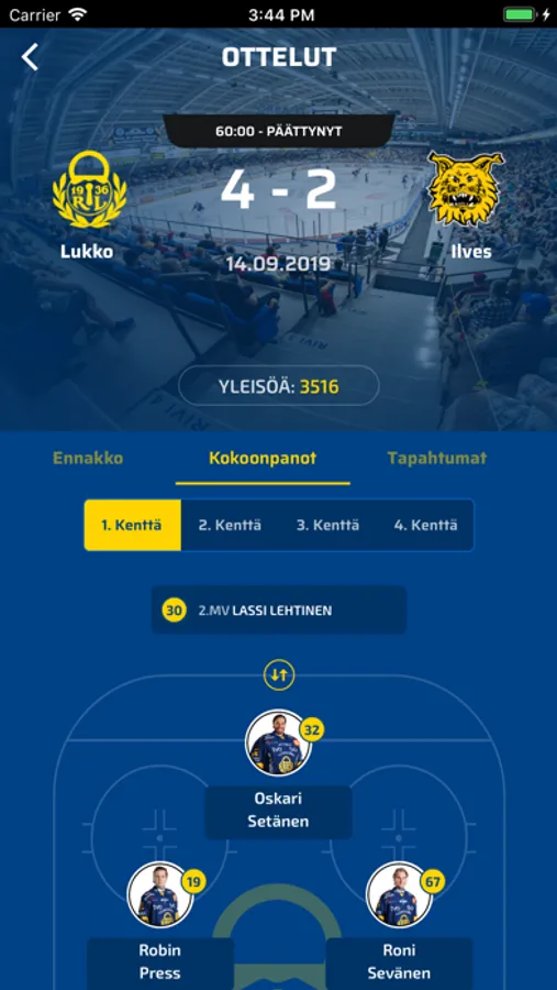- Liiga-otteluiden live-seuranta
