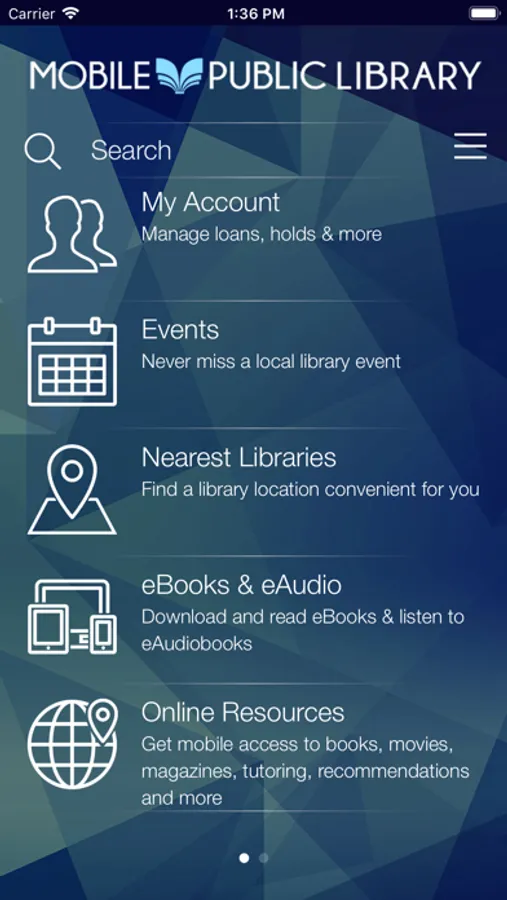 Search the Mobile Public Library catalog from your mobile device, manage your account, renew and reserve books and materials, download books, audio books and movies