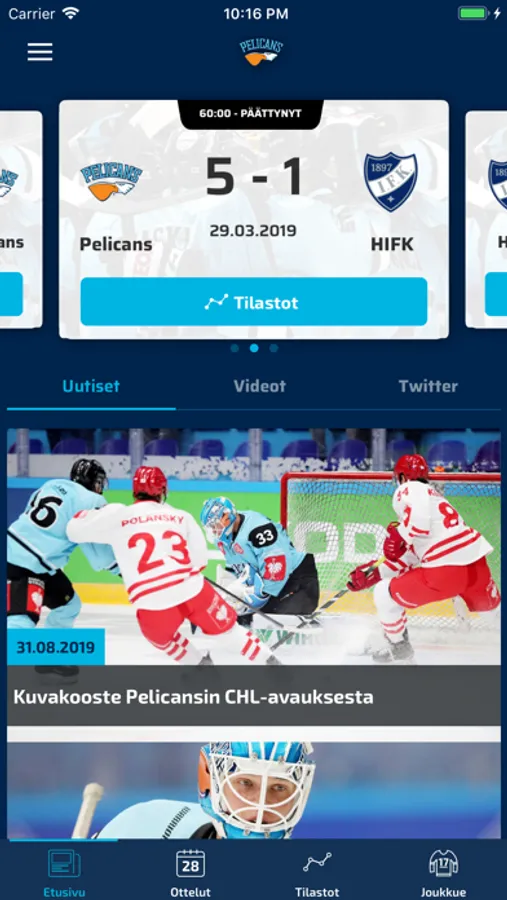 Ilmaisella Pelicans-applikaatiolla pysyt ajantasalla joukkueen tekemisestä ympäri vuorokauden. Sovelluksesta löydät kaiken tarvittavan tiedon lahtelaiskiekon lippulaivasta.