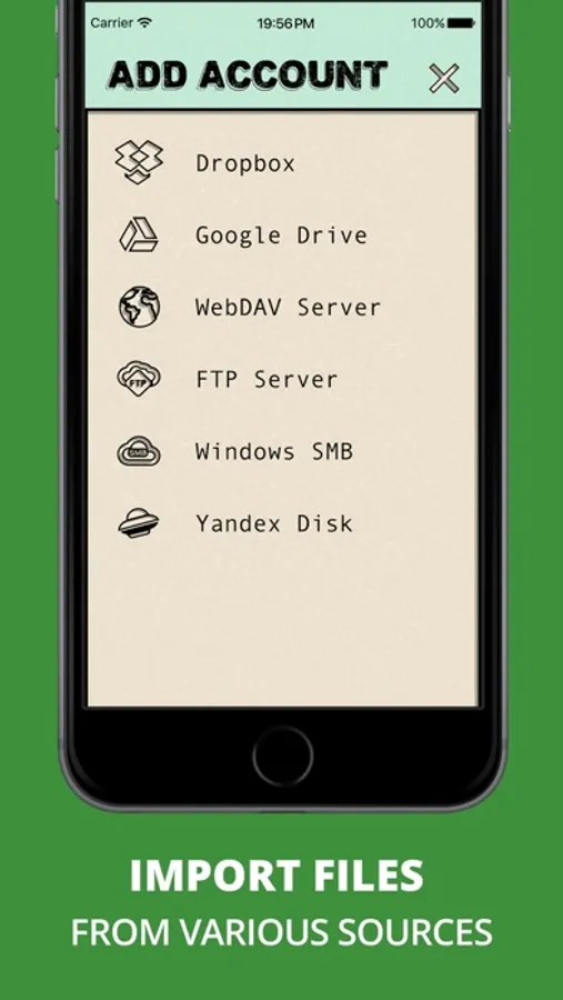 => You can import files for conversion from apps such as iCloud, Dropbox, OneDrive, Google Drive, and many more