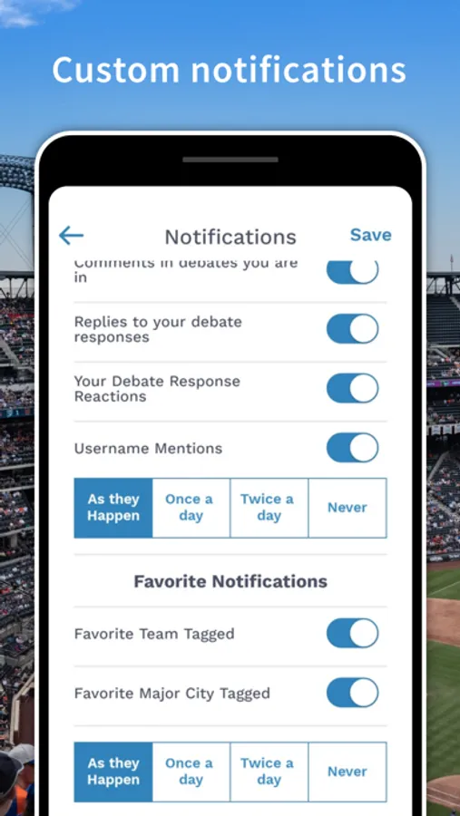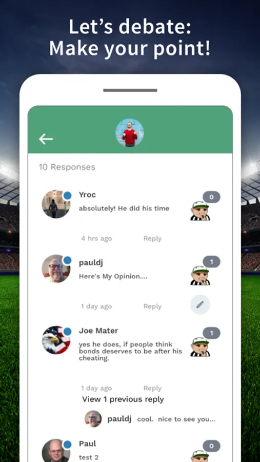 • Have a favorite sports team or city? Get notifications on when debates tag your favorite teams or favorite major cities and have localized sports discussions.