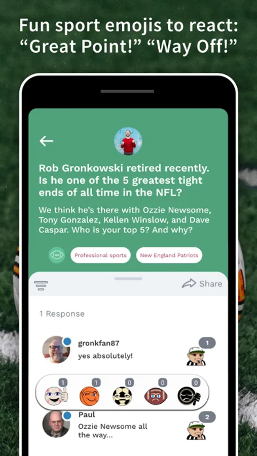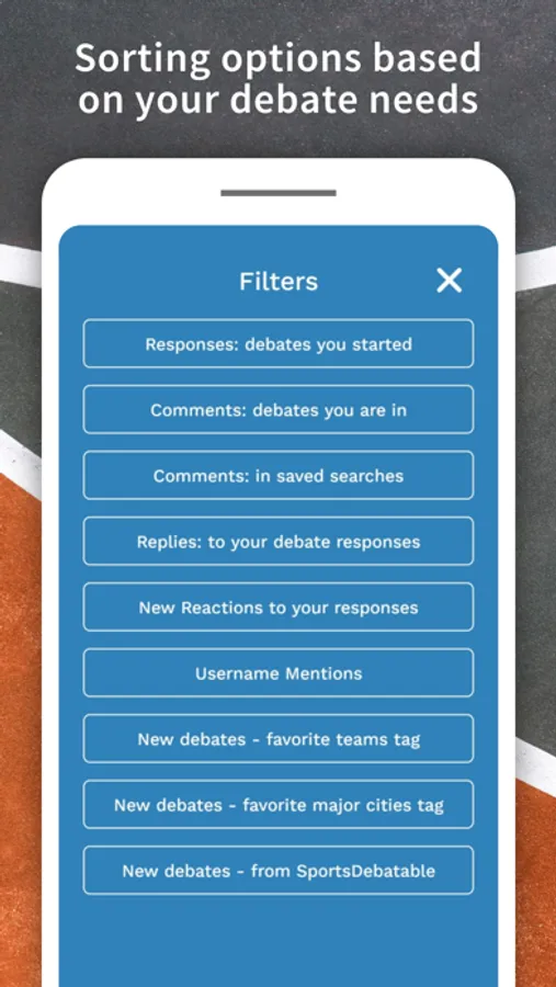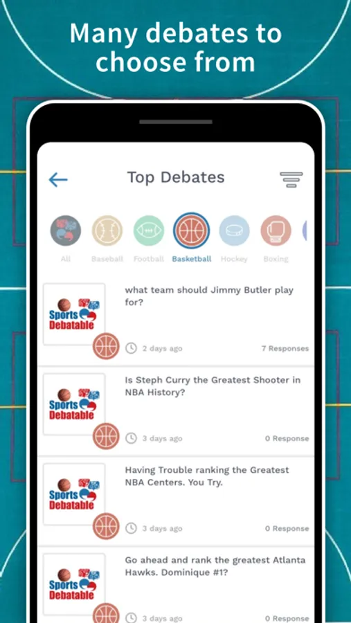 • Easy to filter topics: Want to debate just baseball? Go for it. Want to see just Football topics? Just click a sport ball icon.