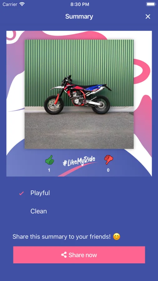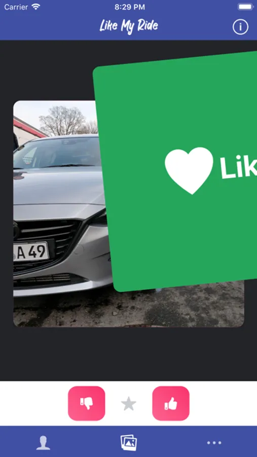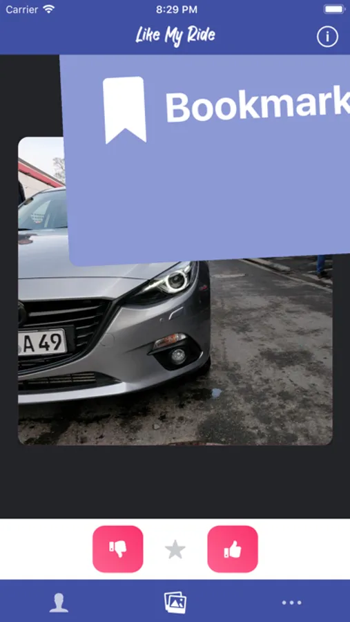 Swipe left to dislike, swipe right to like, swipe up to bookmark.