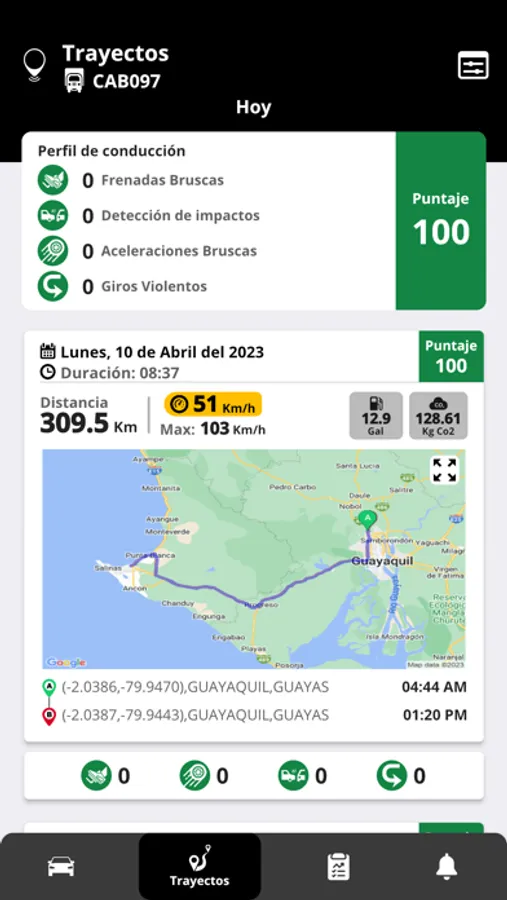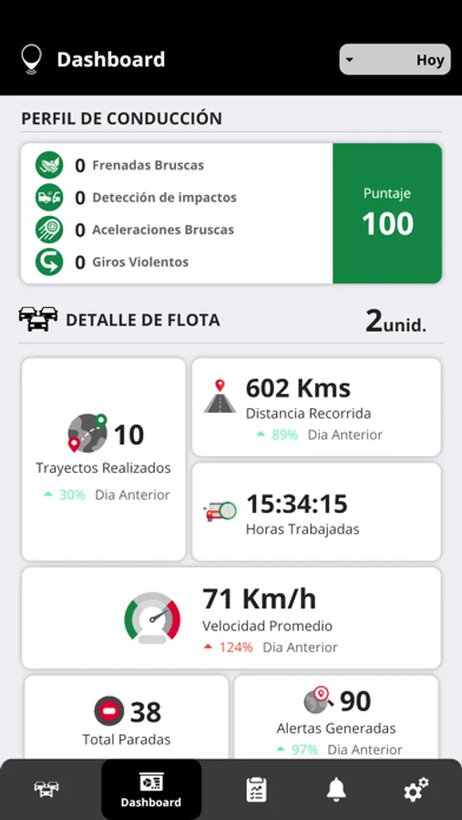 - Perfil de conducción (aceleradas, frenadas y giros bruscos)