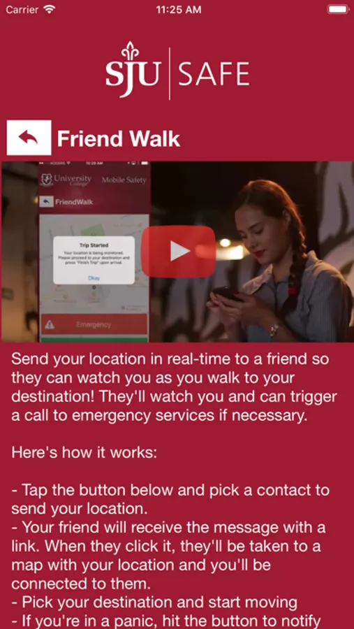 - Panic Button / Mobile Bluelight: Send your location to SJU security in real-time in case of a crisis