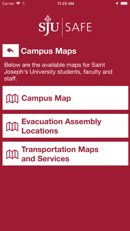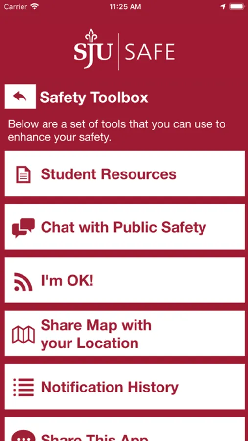 - Safety Notifications: Receive instant notifications and instructions from SJU safety when on-campus emergencies occur.
