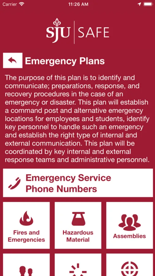 - Emergency Plans: Campus emergency documentation that can prepare you for disasters or emergencies. This can be accessed even when users aren’t connected to Wi-Fi or cellular data.