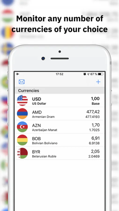 - Personalize your experience by monitoring any number of currencies of your choice.