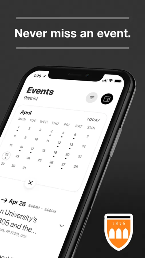 The event section shows a list of events throughout the district. Users can add an event to their calendar to share the event with friends and family with one tap.