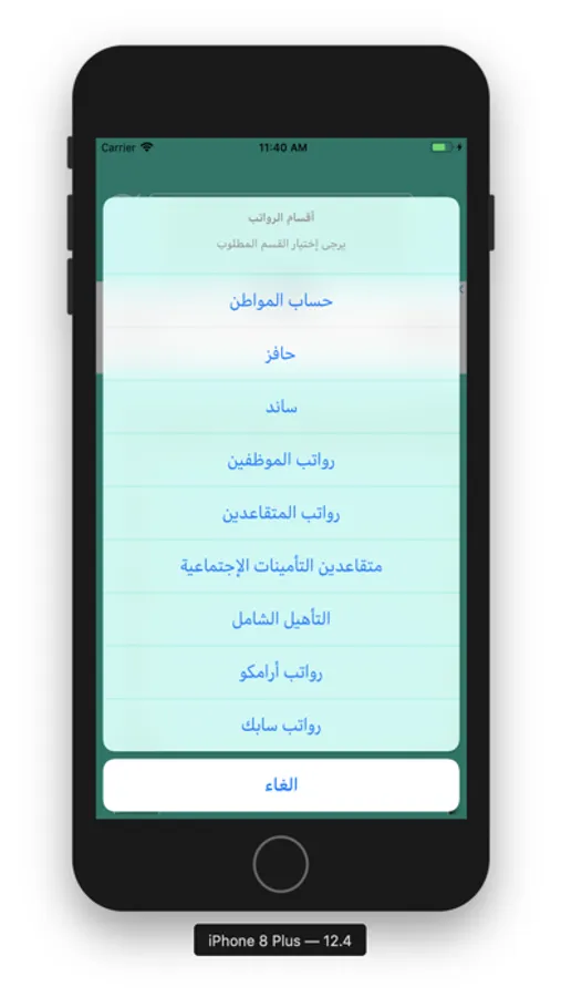 يحتوي التطبيق على العديد من القطاعات لمعرفة تاريخ إيداع الراتب لها كما يلي :