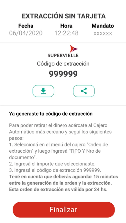 Realizar Órdenes de Extracción y retirar efectivo desde un Cajero Automático sin Tarjeta Supervielle Débito