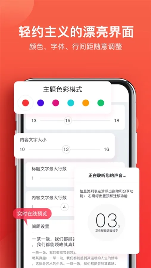 3. 信息流文本字号字间距自由控制,极大限度的满足您对记事体验的延展需求;