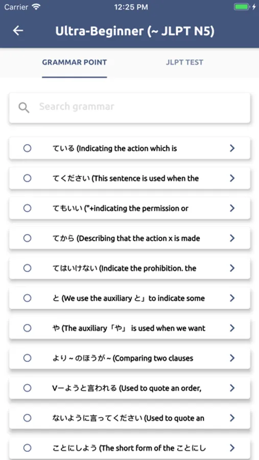 - Each level contains over 400 grammar activities, split into about 20 tests, are made to mimic a real JLPT exam, to prepare you to JLPT test