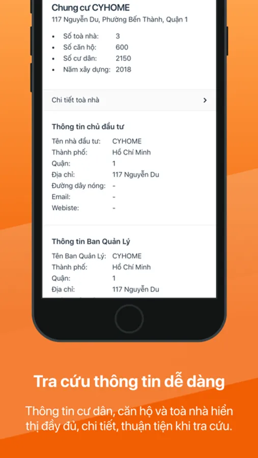 5. Tra cứu tất cả thông tin về căn hộ, cư dân của các dự án trong phạm vi quản lý.