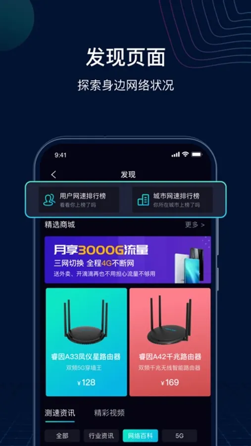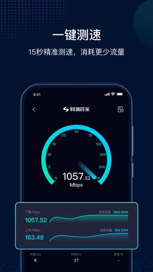 【一键测速】一键测试宽带、Wi-Fi、4G、5G网速,提供下载速度、上传速度、网络延时、网络丢包和网络抖动数据 ;