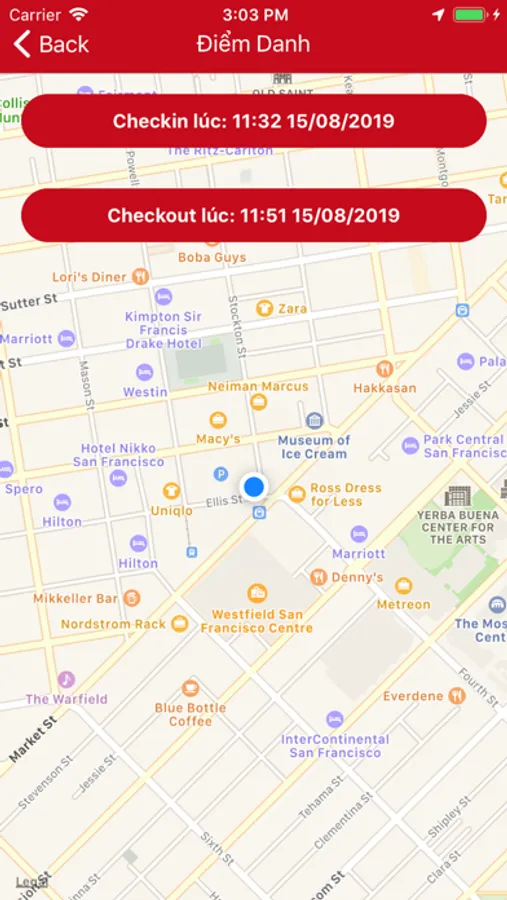 - Xem cụ thể vị trí chấm công qua bản đồ
