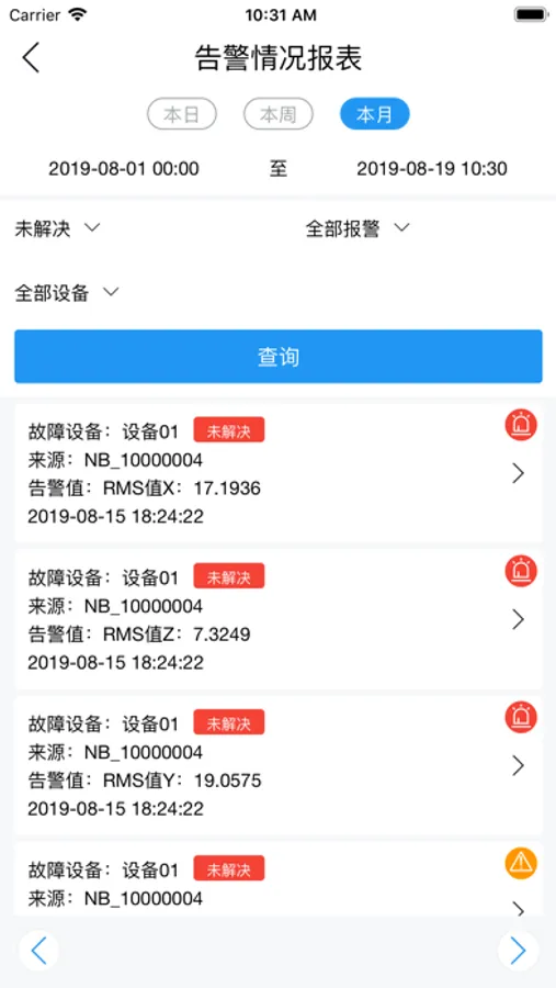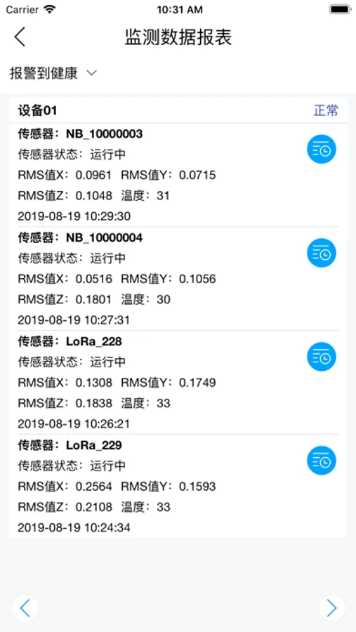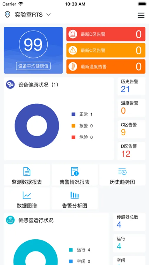 可实时查看昇阳科技监测设备对工业设备健康状况的监测数据、提供对设备监测数据的多角度分析功能,让客户可以看到系统对工业设备健康风险的评估信息;在App的帮助下,企业可快速知晓被监测工业设备的健康状况,可方便把控工业设备的健康状况。