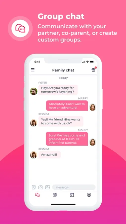 Keep all communication between your partner, co-parent or your child in one place as well as sharing your favourite pictures from the weekend.
