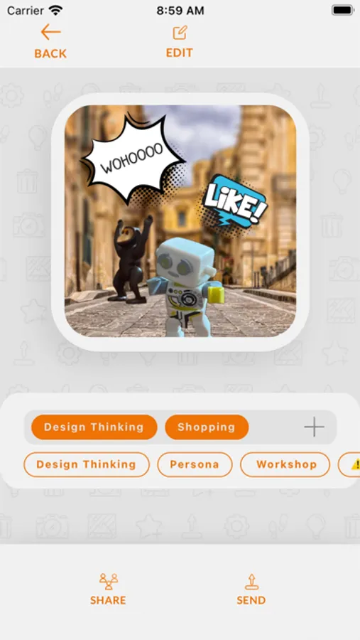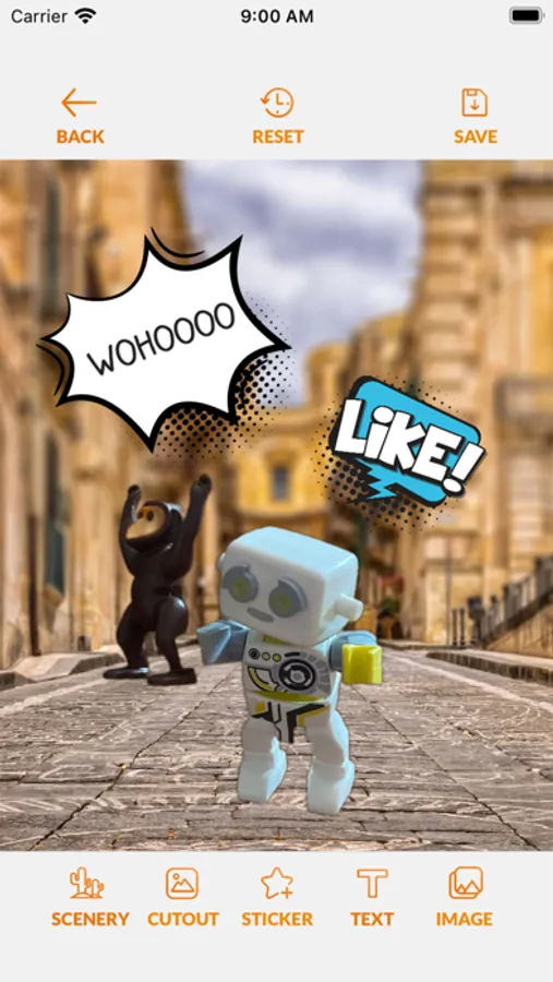 Bring your ideas to life and transform the captured images into meaningful scenarios by editing them. Tell a story by adding expressive stickers, from speech bubbles to explosions, everything is possible.