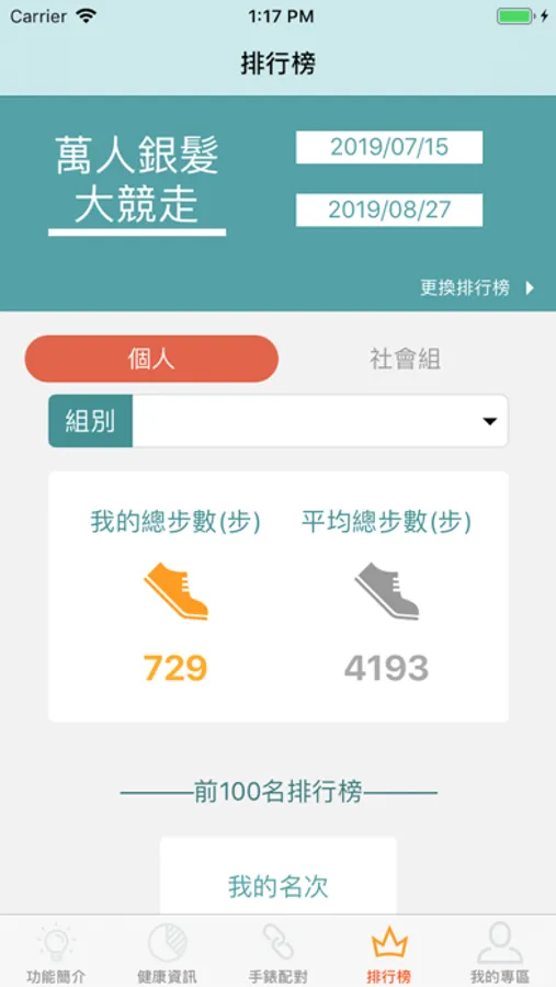 可經由App掌握手錶上傳健康資料,在活動期間,也可查看目前活動名次,詳細功能如下: