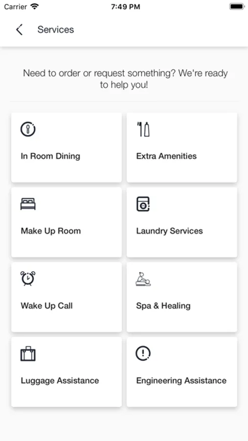 * Pesan layanan hotel & concierge (room service, amenities, dsb)
