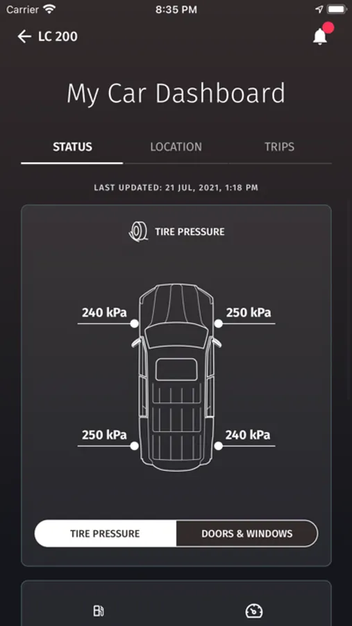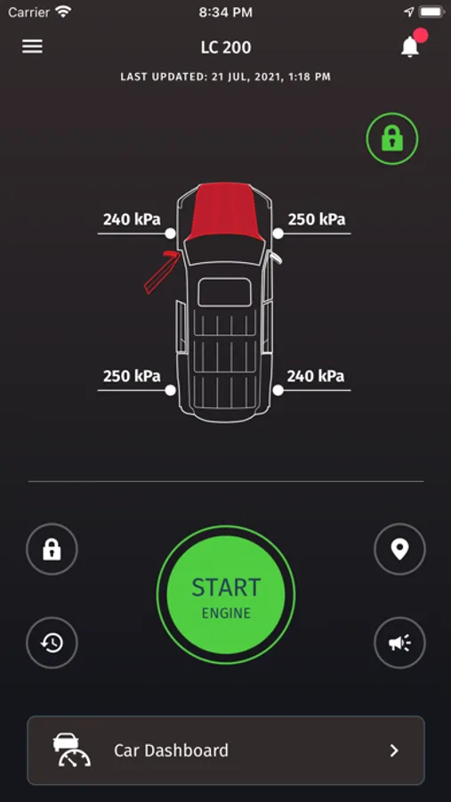 Get real time notification about the status of your car.