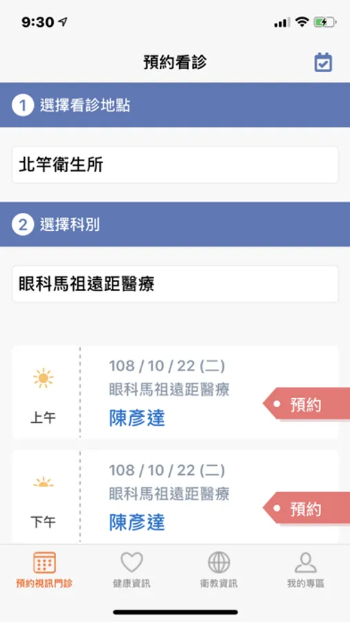 (2) 預約掛號:App可提供預約服務,透過該App可以進行預約,串聯預約後台後,回饋預約成功或失敗。