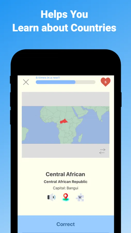 Not only the national flags but also the maps of the countries and the names of the capitals are displayed, so just playing the quiz game will give you a natural knowledge of the countries around the world.