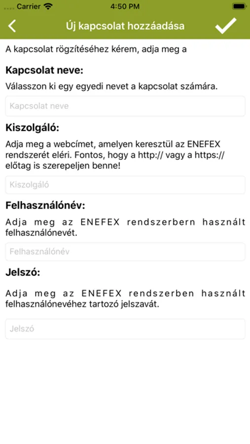 - Létrehozhat, módosíthat és törölhet kapcsolatokat, amelyek egy-egy szerver hozzáférést képviselnek. Használatukhoz meg kell adnia azt a kiszolgálót (a címet, amelyhez weben keresztül szokott kapcsolódni) valamint az ott használt felhasználónevét és jelszavát.