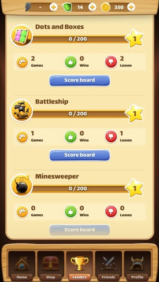 Dots And Boxex, Minesweeper, Battleship, Mothello (mini Othello)