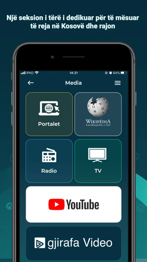 - Seksion i dedikuar për medie si lajme, video, shkrime, etj.