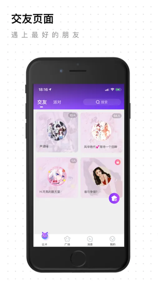 比卡爱玩,稳定高效的聊天工具,用文字、用声音、用图片与朋友亲密沟通,社区分享生活,私密安全无忧,还可以多人用语音聊天噢~ 稳定IM私聊,高到达率社区分享生活分享快乐私密无忧,信息加密安全兴趣群聊,实时声音畅聊