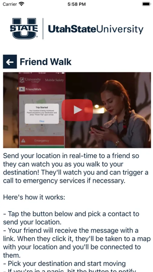 - Safety Notifications: Receive instant notifications and instructions from Utah State University safety when on-campus emergencies occur.