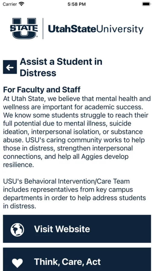 - Support Resources: Access support resources in one convenient app to enjoy a successful experience at Utah State University.