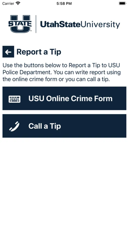 - Tip Reporting: Multiple ways to report a safety/security concern directly to Utah State University security.
