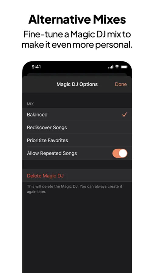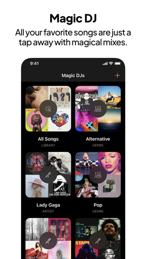 With Magic DJ, you can create mixes of artists and genres with different algorithms, like playing more of your top songs or rediscovering hidden gems in your music library. It’s like a shuffle mode — but more intelligent and tailored just for you.