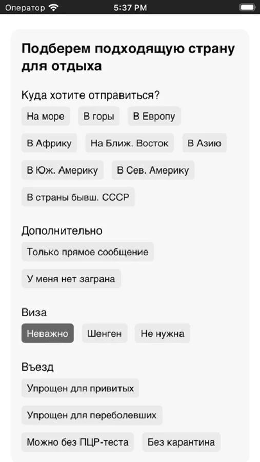 Сейчас в списке — самые популярные среди туристов направления, куда можно относительно легко добраться. Государства вроде Зимбабве в навигатор мы пока не включали, но в будущем планируем добавить все открытые страны. Следите за обновлениями и не упустите важную информацию.
