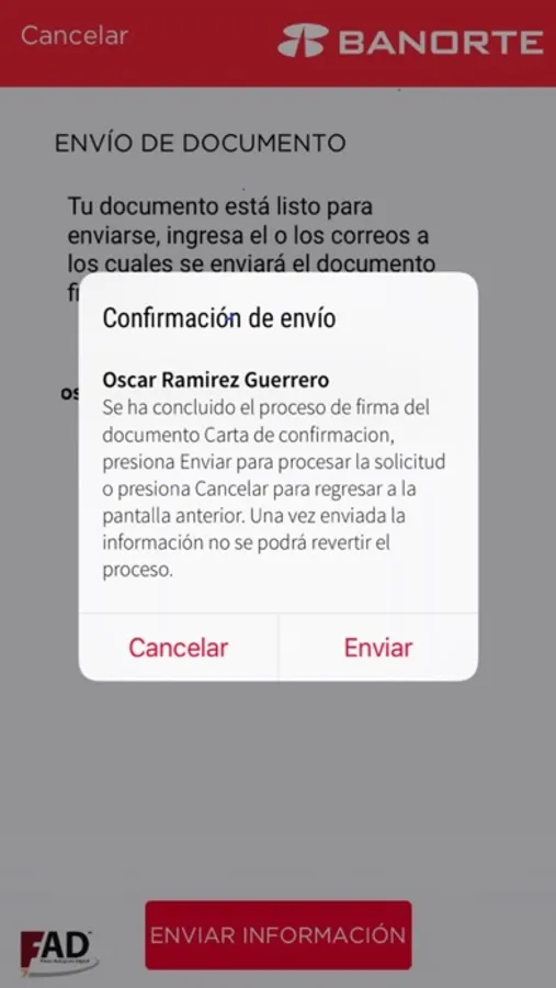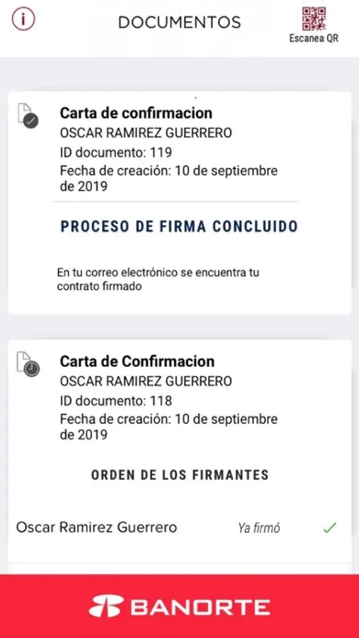 En cuestión de minutos recibirá el documento firmado por el personal de Banorte y podrá resguardar la confirmación de su operación de forma digital.