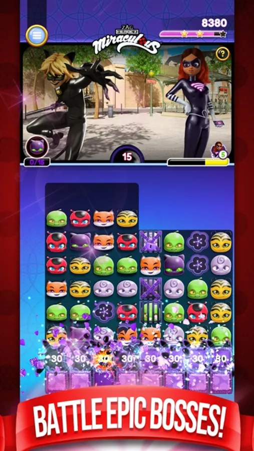 Line up the adorable Kwamis and use Ability Jewels to earn the highest score in each stage, then fight against your favorite akumatized villains in challenging boss battles.