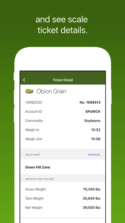 The Obion Grain Co. app is an essential mobile solution that connects your operation to your grain facility, providing real-time, actionable information to help you manage and grow your business.