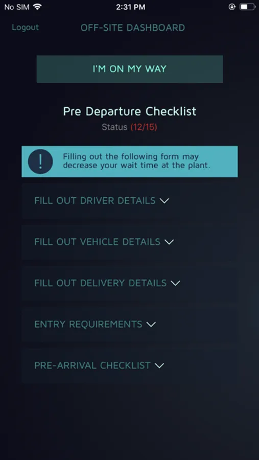 Exelon Nuclear Driver app allows vendor drivers to alert the station of their pending arrival. Delivery details will interface with Exelon Vehicle Search Application used by Exelon Nuclear Security officers providing a shorter wait time while at delivery location. Checklist style brief prepares drivers to make a delivery at an Exelon Nuclear Station