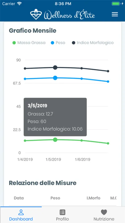 - Monitorare mensilmente l'evoluzione di peso, grasso e indice morfologico;
