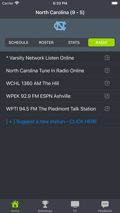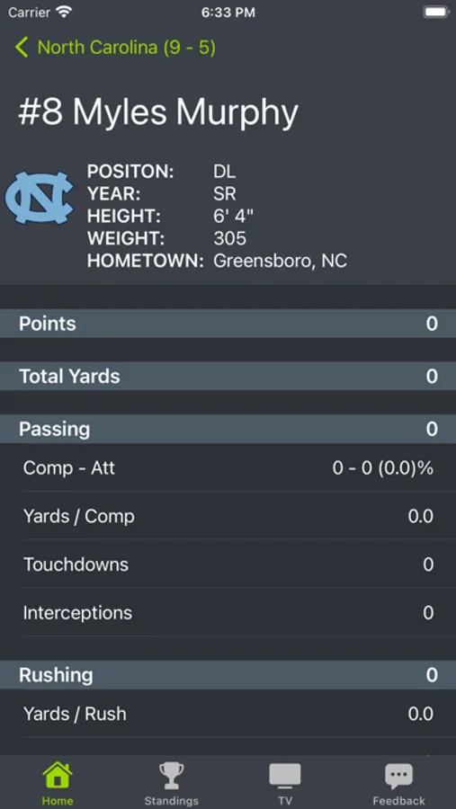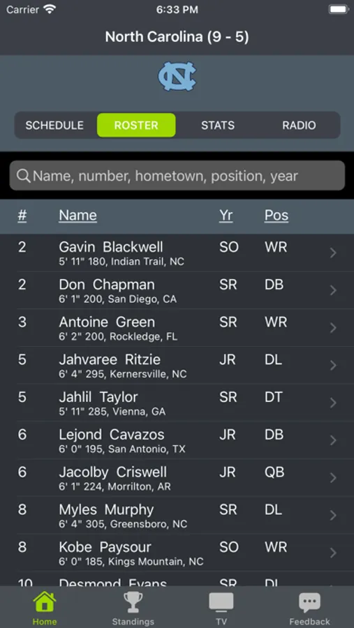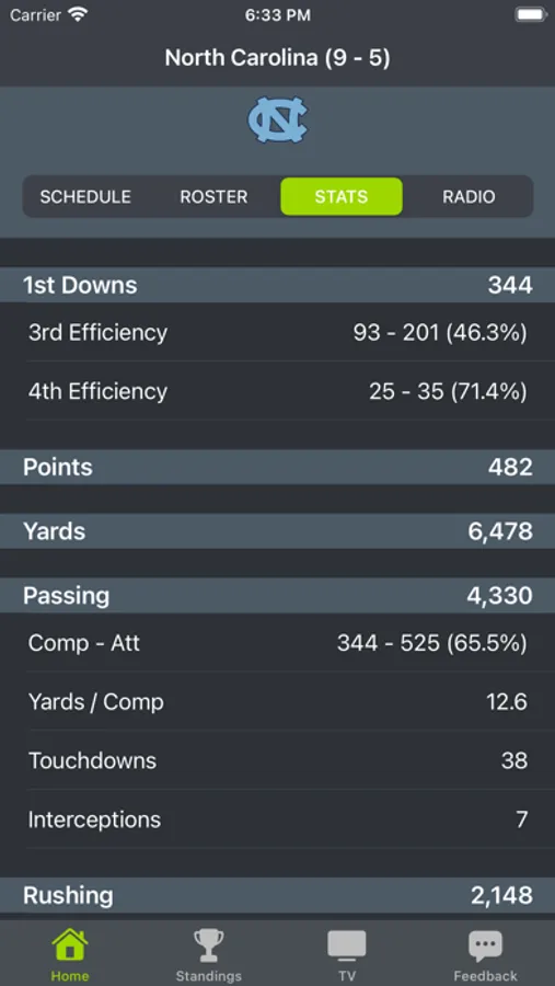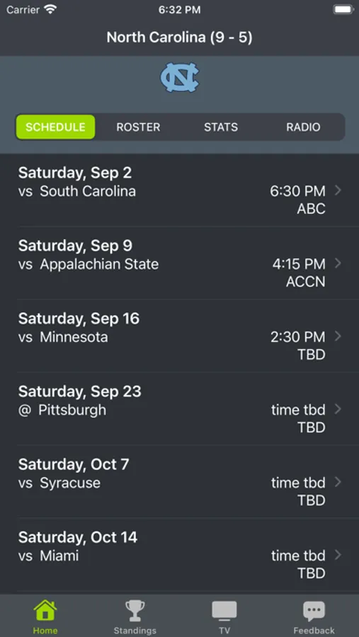 North Carolina Football provides scores, links to live radio, schedules, tv channels, player profiles, and game matchups in one location.
