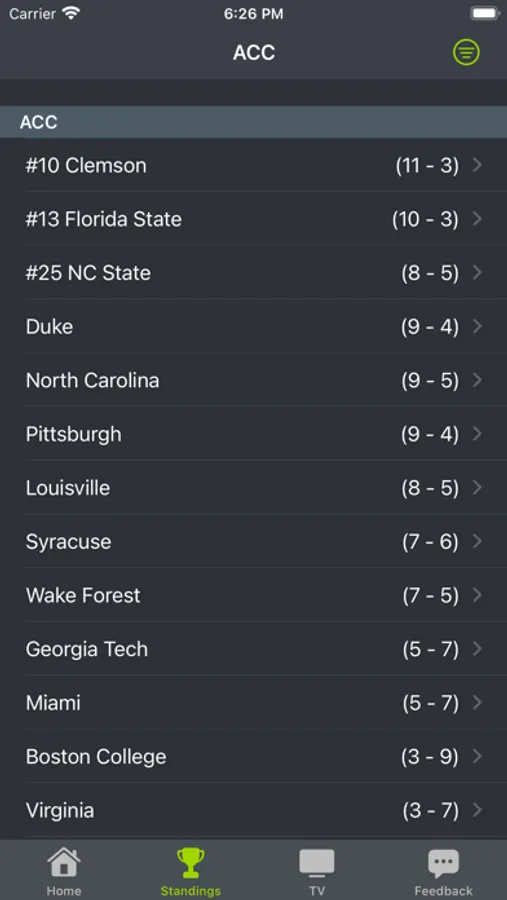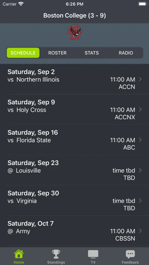 "...love the TV schedule. No longer have to look at my cable guide to look at my game schedule during College Game-day."