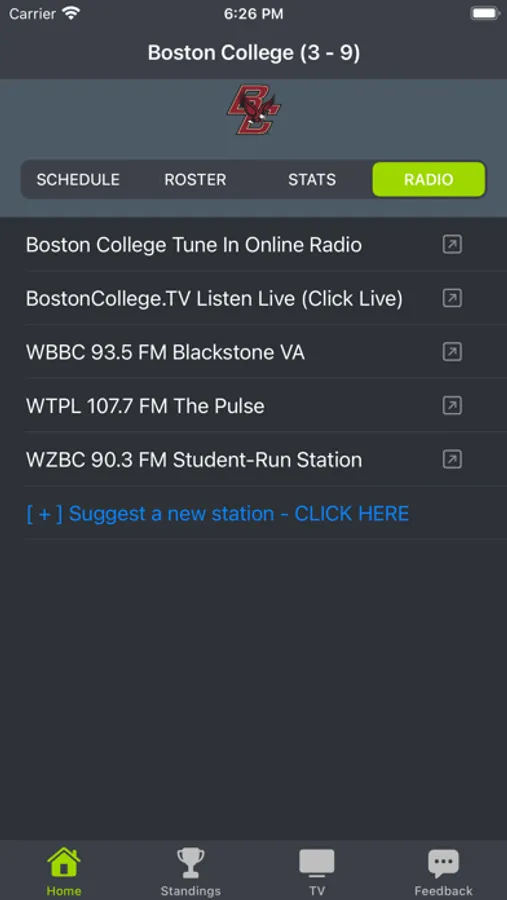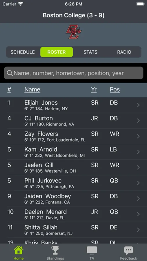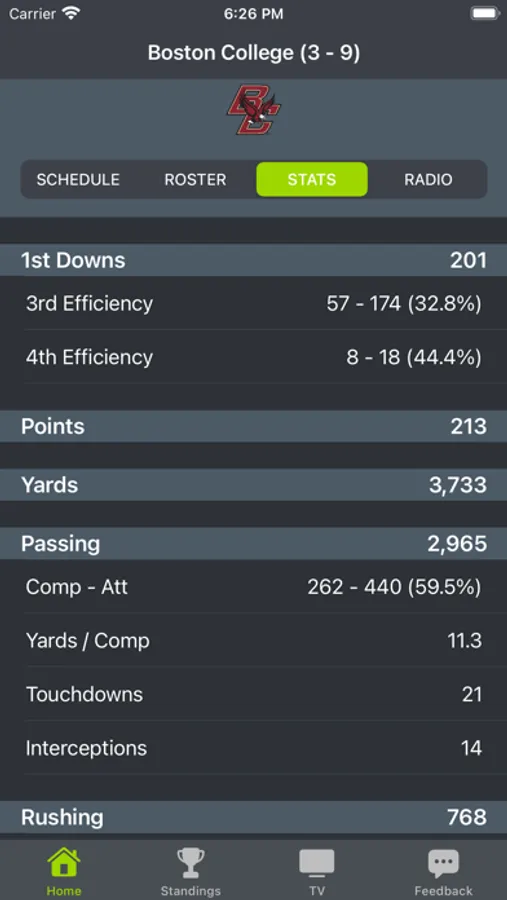 Boston College Football provides scores, links to live radio, schedules, tv channels, player profiles, and game matchups in one location.