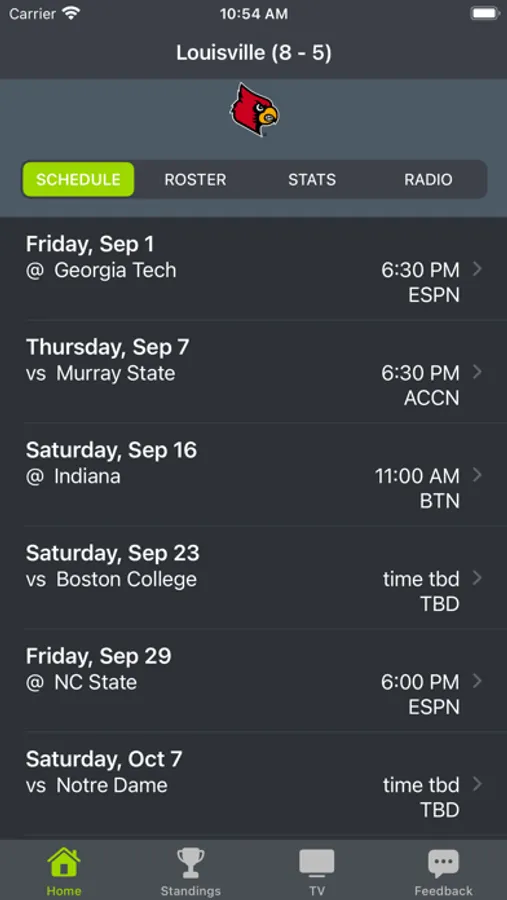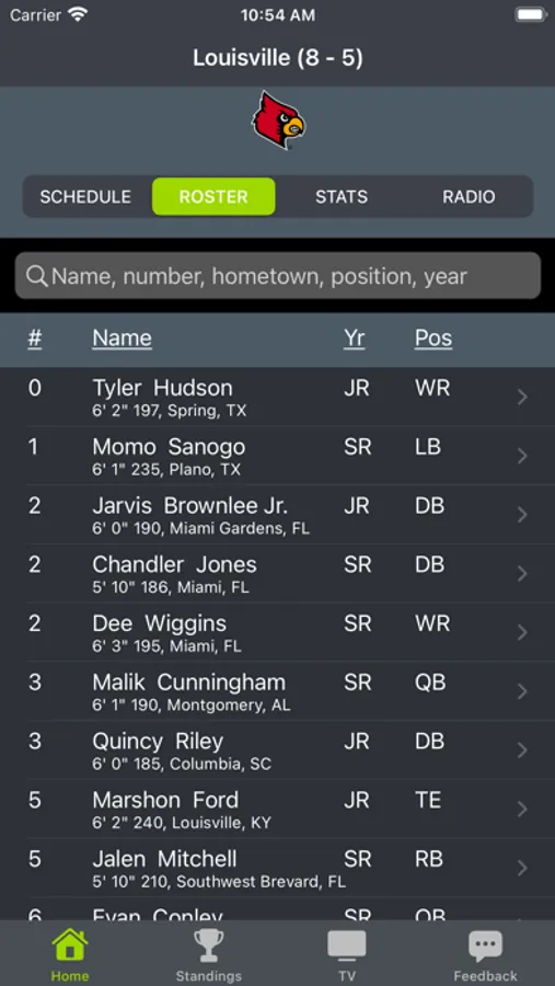 Louisville Football provides scores, links to live radio, schedules, tv channels, player profiles, and game matchups in one location.