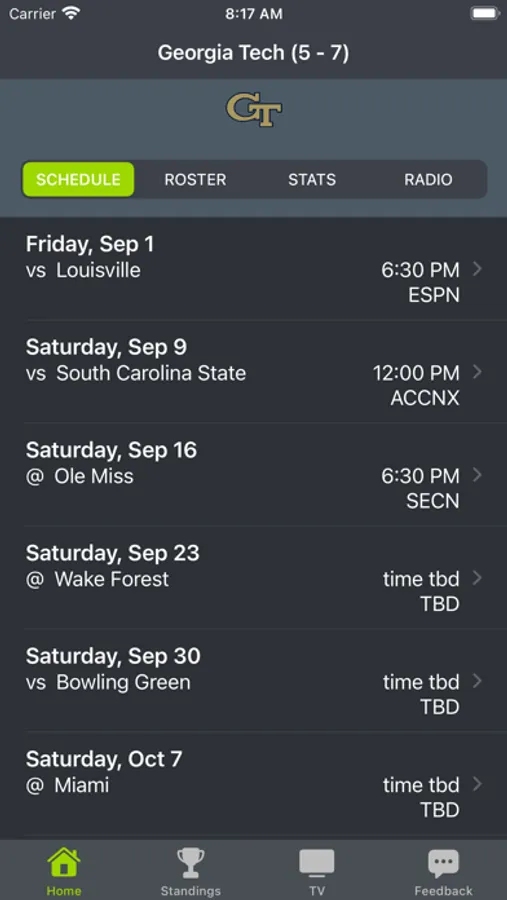 "...love the TV schedule. No longer have to look at my cable guide to look at my game schedule during College Game-day."
